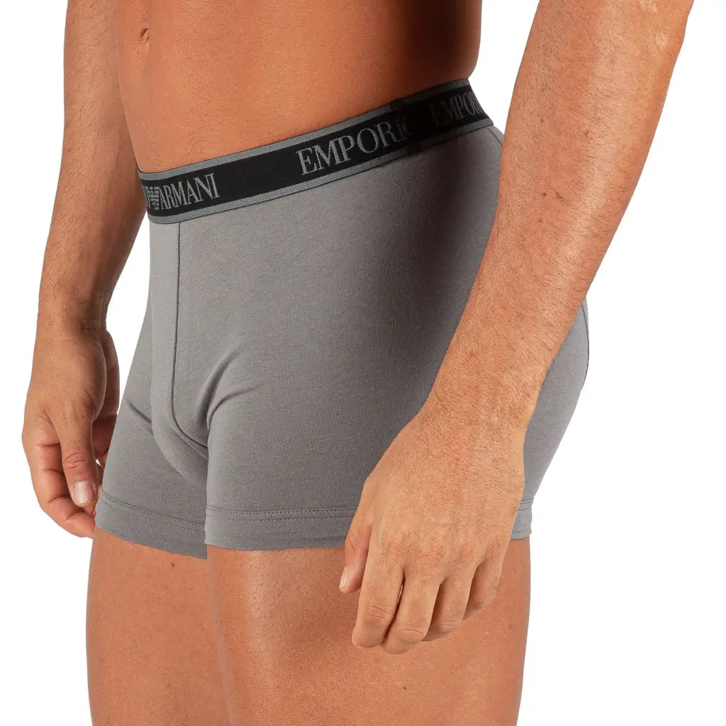 Boxer in cotone elasticizzato della linea Emporio Armani. Questa linea esclusiva e alla moda è realizzata in un morbido cotone elasticizzato in tinta unita ed elastico in contrasto di colore per un effetto cromatico molto particolare. I colori sono di tendenza e allo stesso tempo estremamente portabili e sobri, ma anche inusuali nella versione in fantasia. Questo slip si abbina perfettamente alla t-shirt della stessa linea. Questo boxer è disponibile anche nella versione colorata.