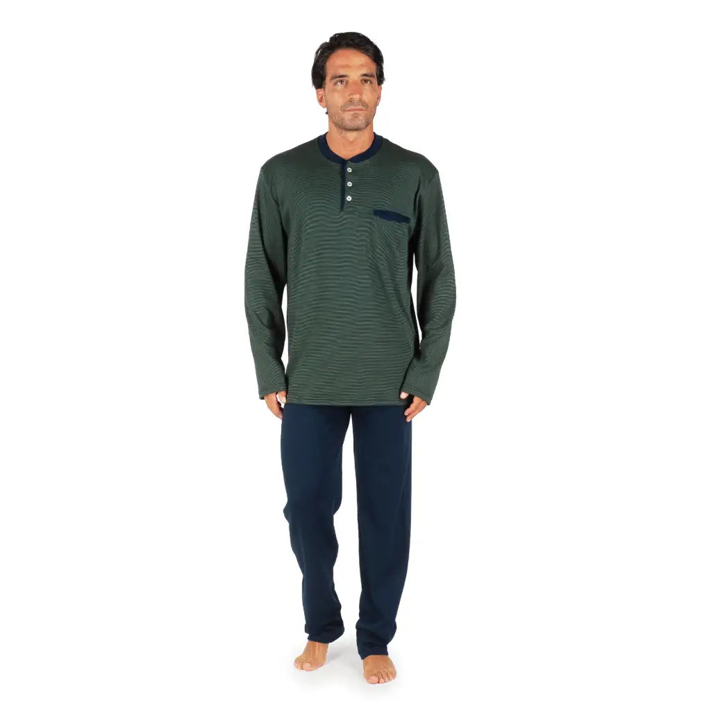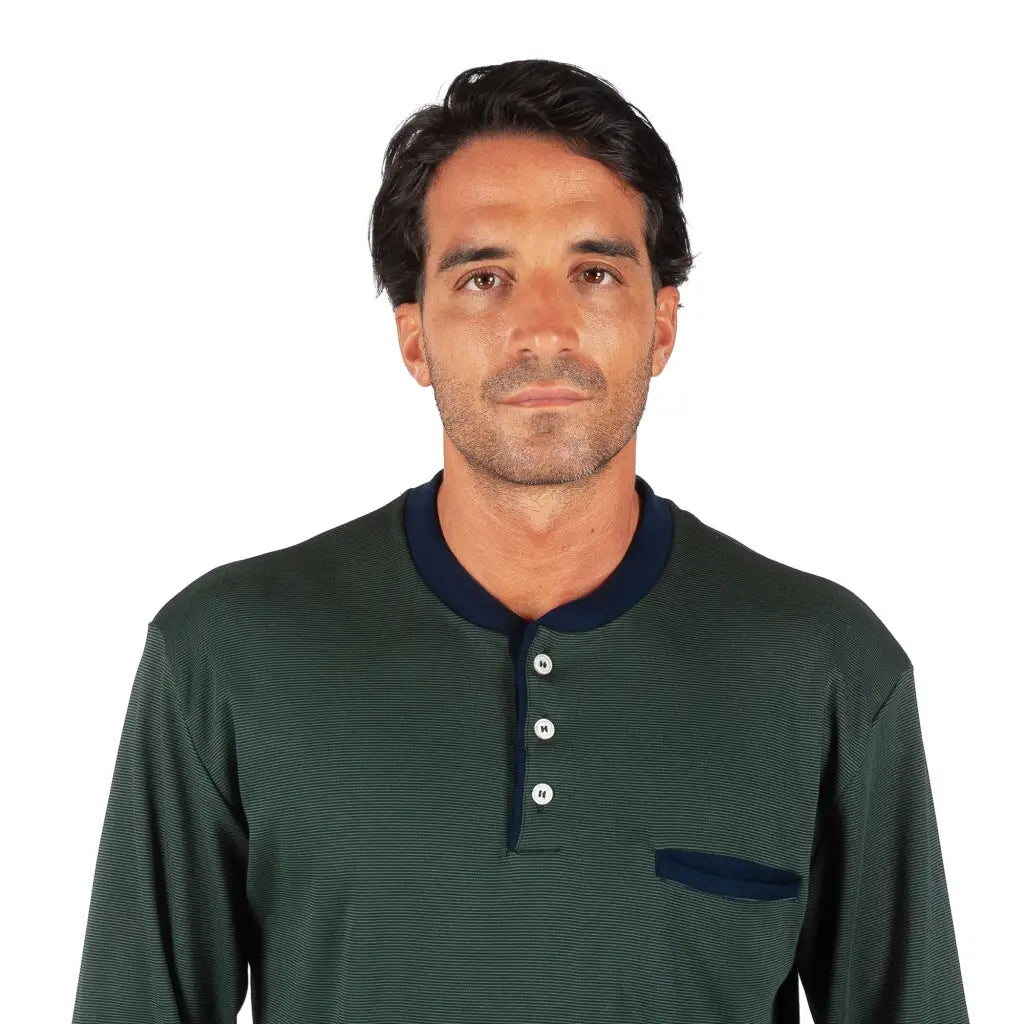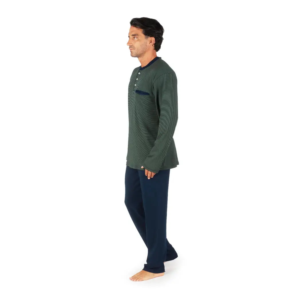Pigiama uomo a serafino a manica lunga in caldo cotone inetrlock| Mariotti Lab