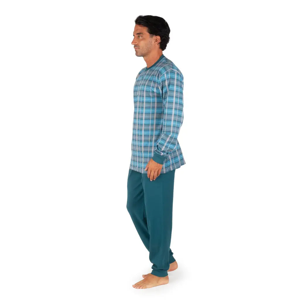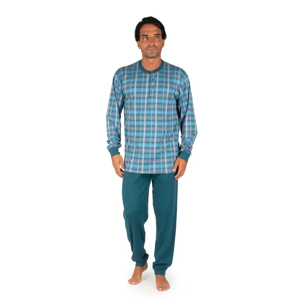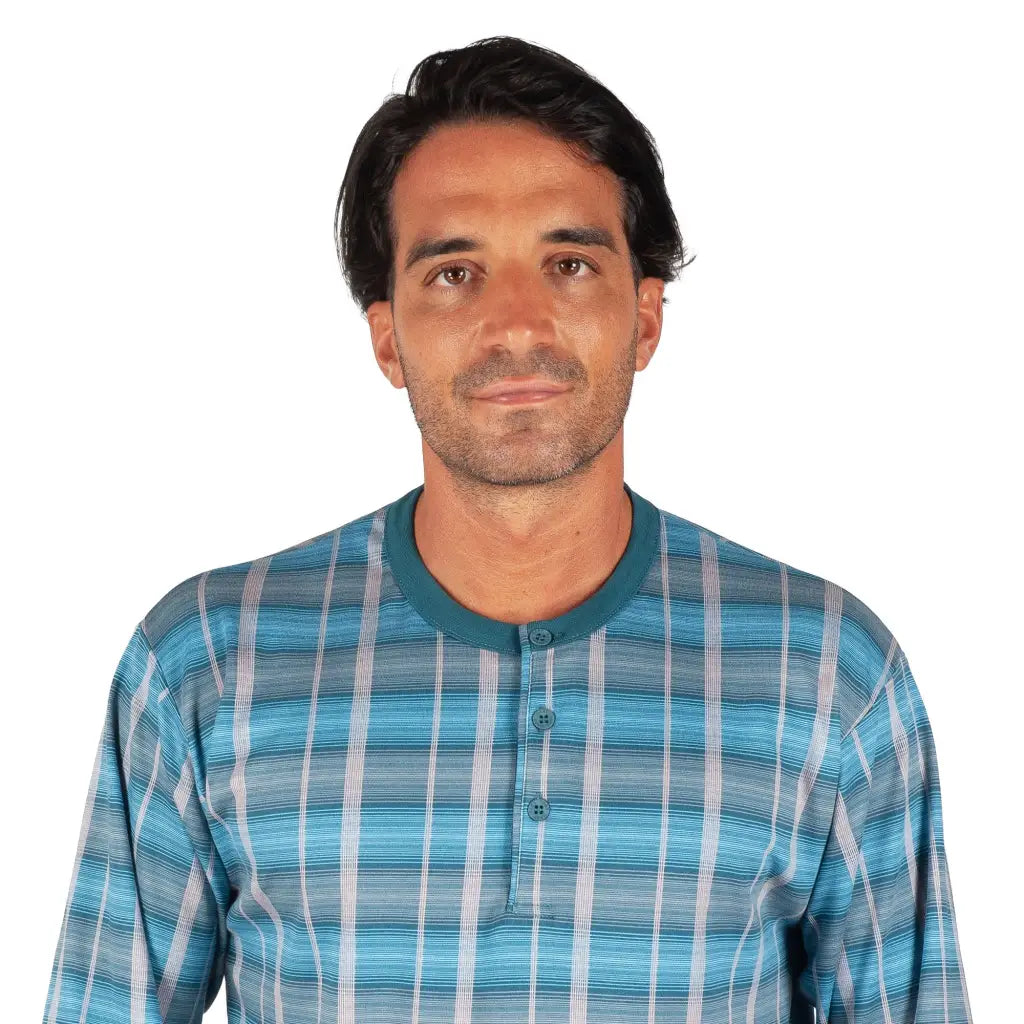 Pigiama uomo serafino a manica lunga con polsino in caldo cotone interlock | Mariotti Lab