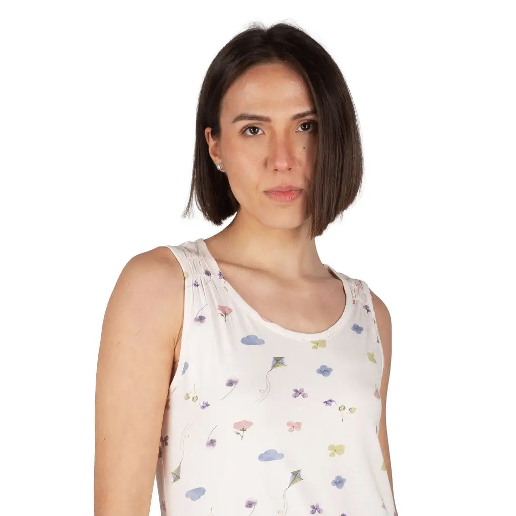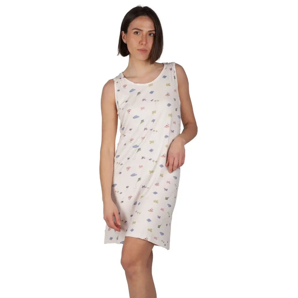 Camicia da notte donna a paricolloa spalla larga in viscosa Fiori di campo