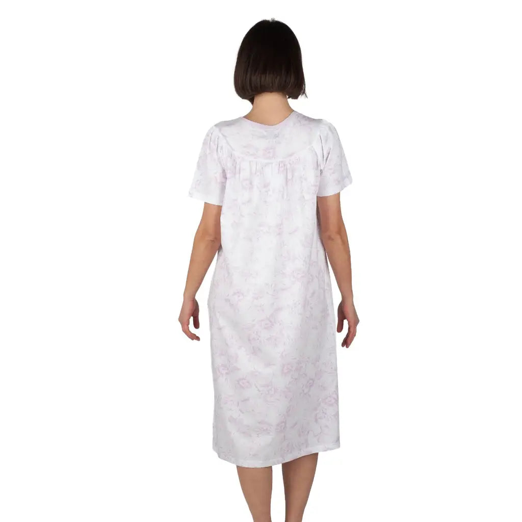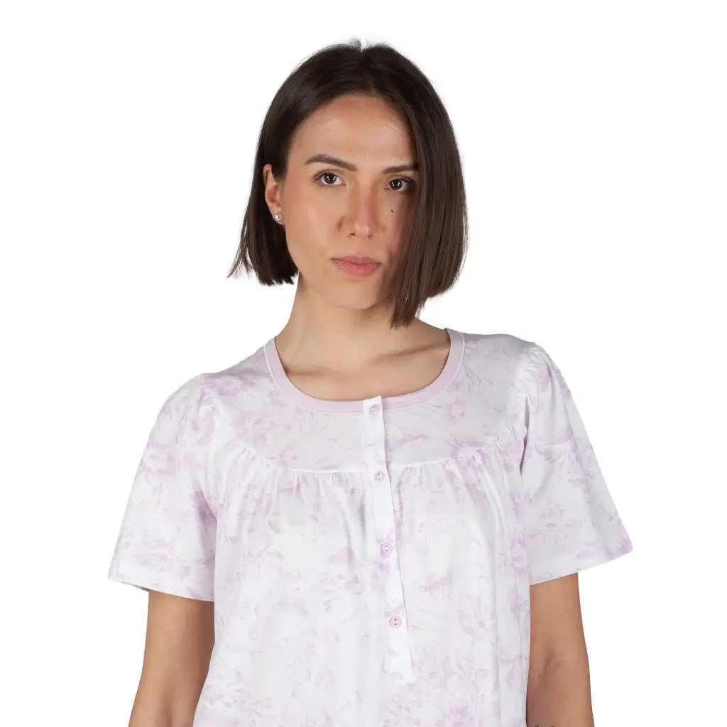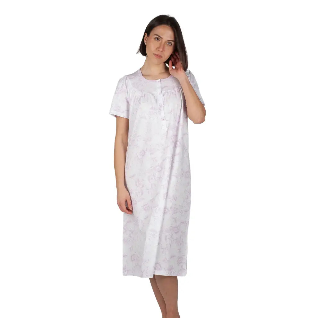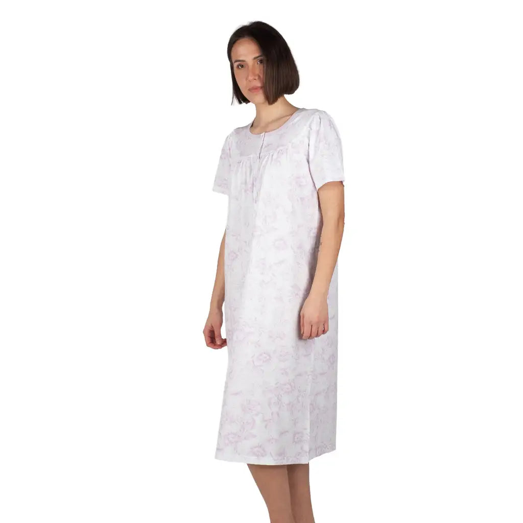 Camicia da notte donna a serafino a mezza manica Raglan in puro cotone leggero Rose