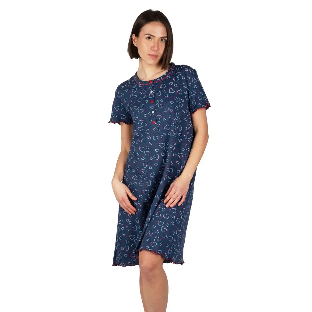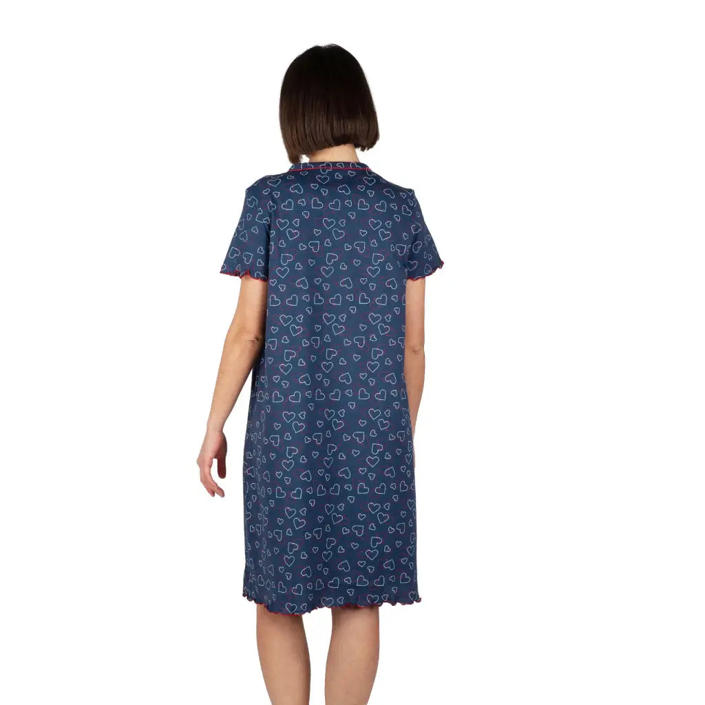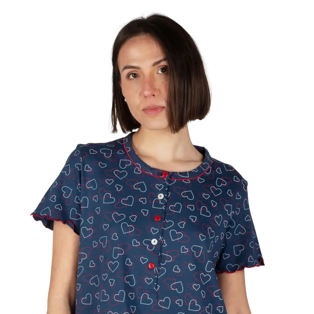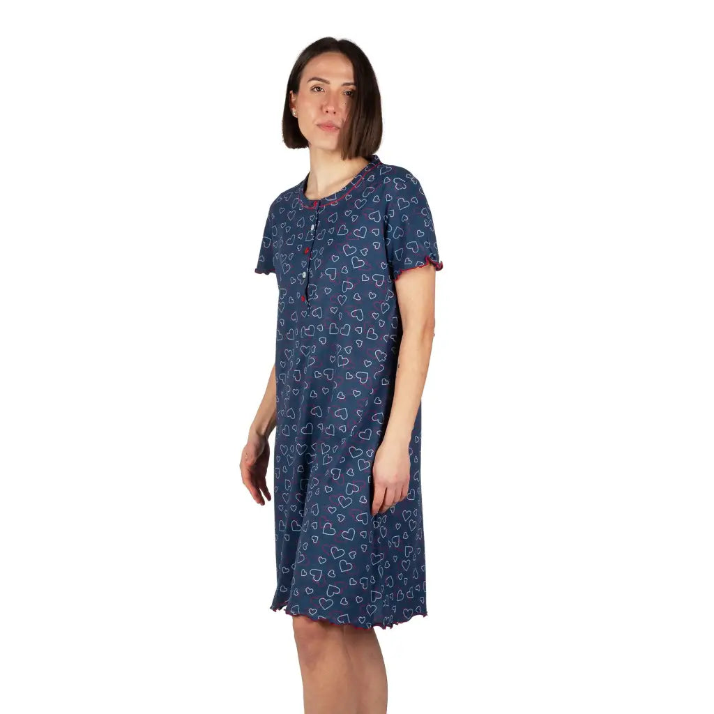 Camicia da notte donna aperta davanti a mezza mancia in puro cotone legegro Cuori | Mariotti Lab