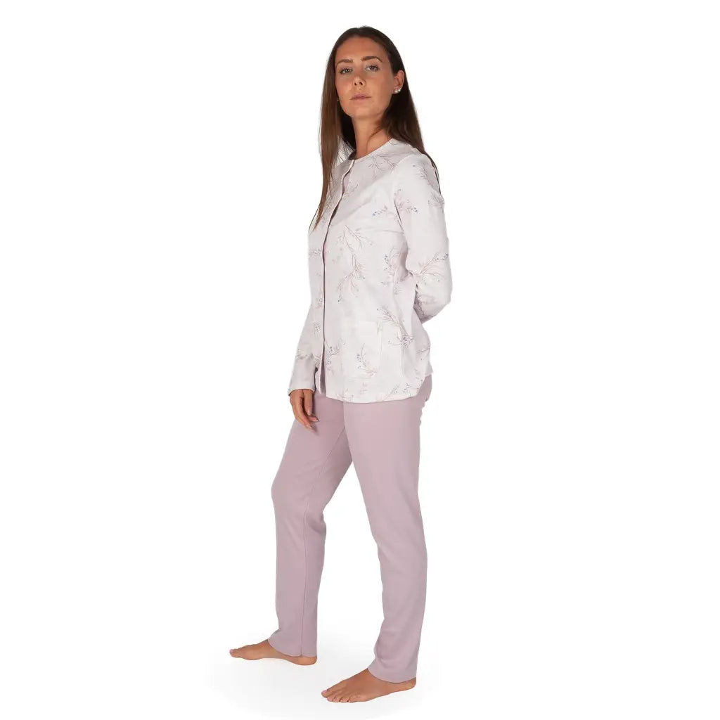 Pigiama donna aperto a manica lunga in caldo cotone interlock | Linclalor