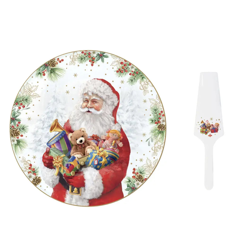 Piatto torta diametro 32 cm in porcellana con paletta Santa Is Coming | Easy Life