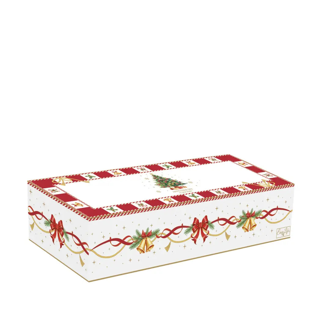 Set aperitivo con 3 ciotoline e vassoio in bambù della linea Christmas Tale di Easy Life. Un design natalizio elegante che con i suoi colori stupirà i vostri ospiti e colorerà i vostri pranzi e cene. Questo set aperitivo può rivelarsi anche un'ottima idea regalo grazie alla scatola colorata in abbinato che ne riprende la fantasia. Con la propria fantasia natalizia e festosa sui toni del rosso, verde e oro rappresenta l'essenza della festività, con motivi tradizionali che catturano l'incanto e la magia del periodo natalizio. La porcellana pregiata assicura resistenza e bellezza duratura, mantenendo intatti i dettagli artistici nel tempo. Ideale per chi apprezza i dettagli raffinati e vuole aggiungere un tocco di magia alle proprie celebrazioni festive, questo piatto da portata combina funzionalità e bellezza in perfetto equilibrio.