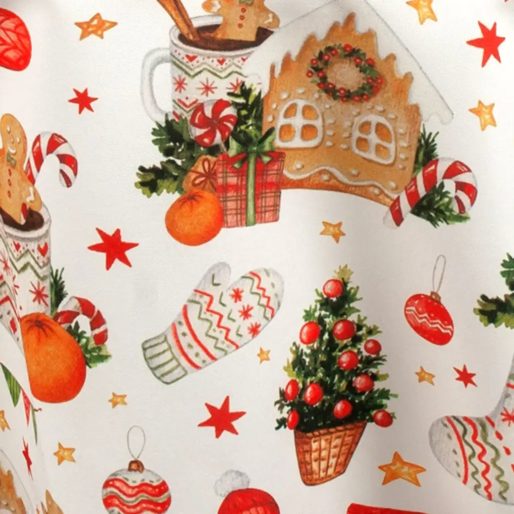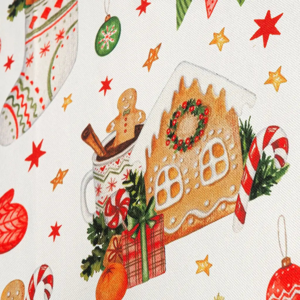 Tovaglia in tessuto antimacchia in fantasia natalizia Marzapane | Zita del Forte