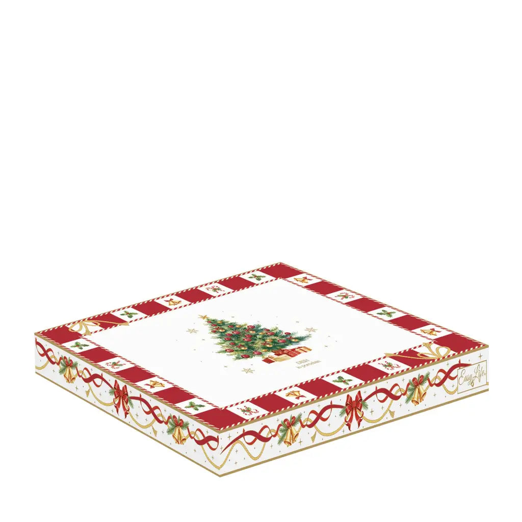 Vassoio sagomato ad albero di natale della collezione Christmas Tale di Easy Life. Realizzato in pregiata porcellana, questo vassoio sarà l'alleato perfetto per la casa durante il periodo delle feste. Perfetto per servire stuzzichini o creme per l'aperitivo o durante i pranzi e le cene delle feste, ogni dettaglio è stato curato per portare calore e magia sulla tua tavola durante le celebrazioni natalizie. Ideale per chi desidera aggiungere un tocco di raffinatezza ai propri momenti conviviali. La qualità della porcellana garantisce durabilità nel tempo, mentre il design sofisticato si integra elegantemente con qualsiasi stile di arredamento. Grazie alla confezione regalo coordinata, che riprende fedelmente la fantasia del prodotto, rappresenta la soluzione ideale per sorprendere chi ami.