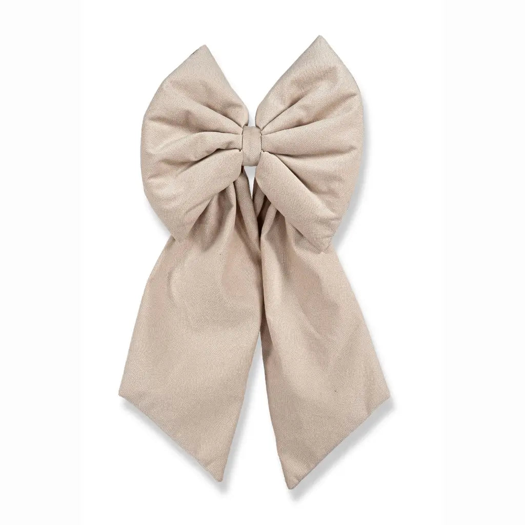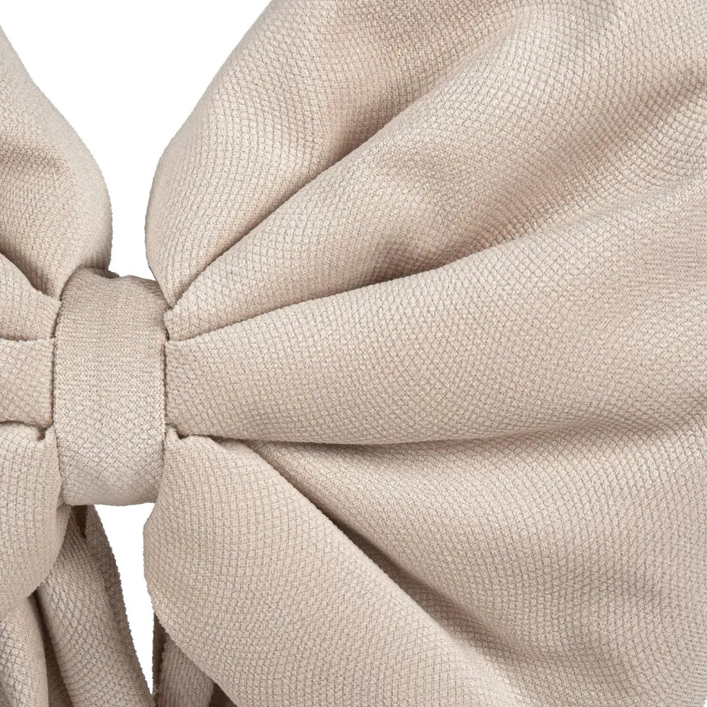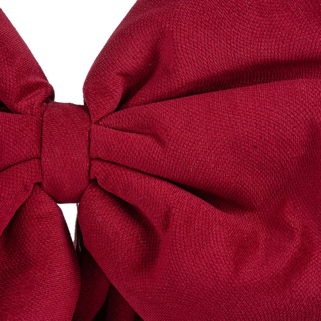 Fiocco decorativo in tessuto della linea Il Maggiolino. Grazie al design molto particolare ed elegante è versatile per poter essere utilizzato non solo nel periodo natalizio. Realizzato in 2 tessuti diversi ha una finitura opaca e texturizzata nei colori Granata e Naturale, mentre ha una finitura lucida e vellutata nelle colorazioni Avorio e Rosa. Può essere facilmente appeso per decorare alberi, scalinate e porte interne.