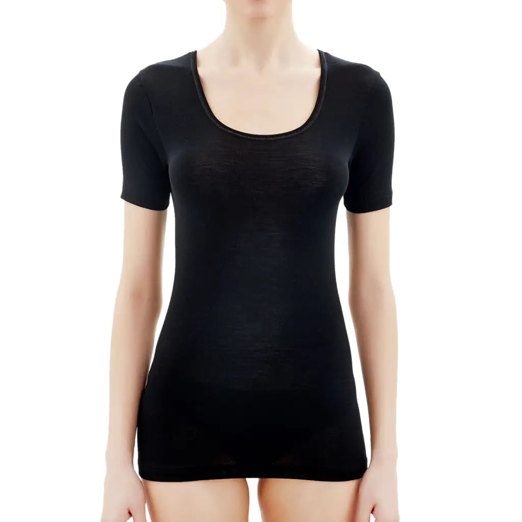 T-Shirt donna a mezza manica paricollo in pura lana Merino Wonderwool di Ragno