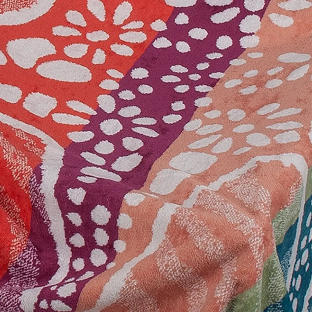 Telo mare unisex in misura maxi 100x180 cm in spugna effetto velour. Dai colori vivaci e brillanti, ha una fantasia di stella marina resa particolare e di tendenza dagli abbinamenti cromatici e dai colori vivacissimi. Comodissimo per il lettino sulla spiaggia, è realizzato in una spugna corposa e morbida che assorbe bene l'acqua e si asciuga piuttosto rapidamente.