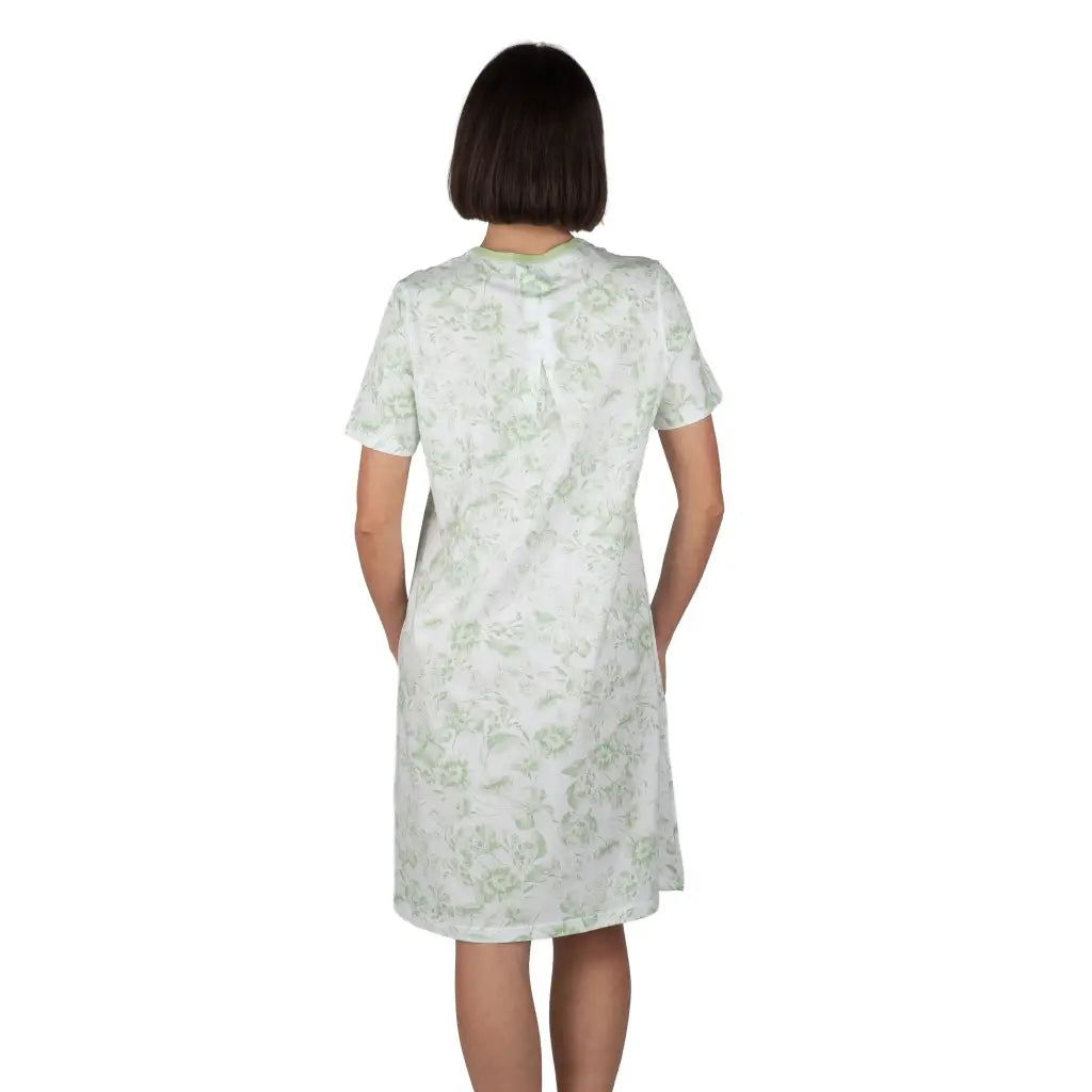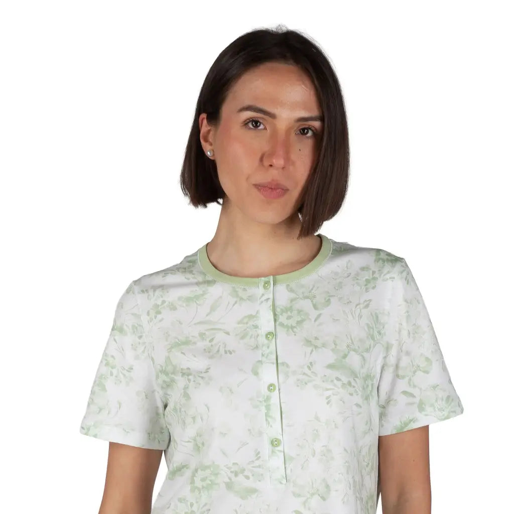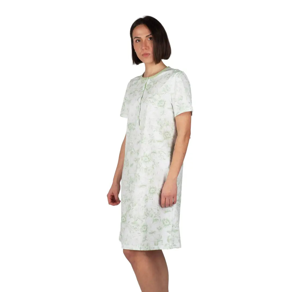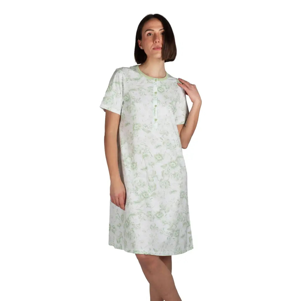 Camicia da notte donna a serafino a mezza manica in cotone leggero Fiore