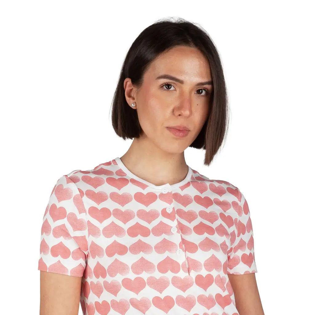 Camicia da notte donna a serafino a mezza manica in viscosa Cuori