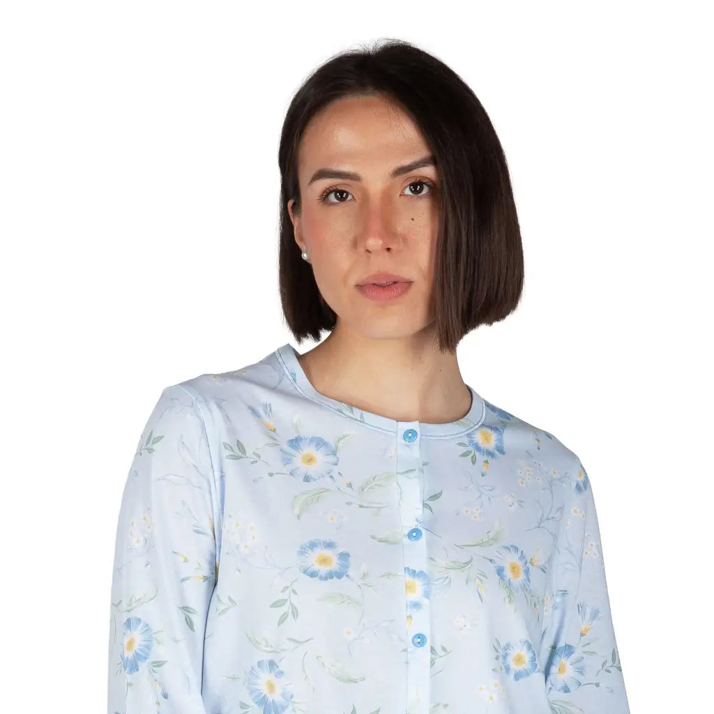 Pigiama donna aperto a manica lunga in cotone leggero Fiore