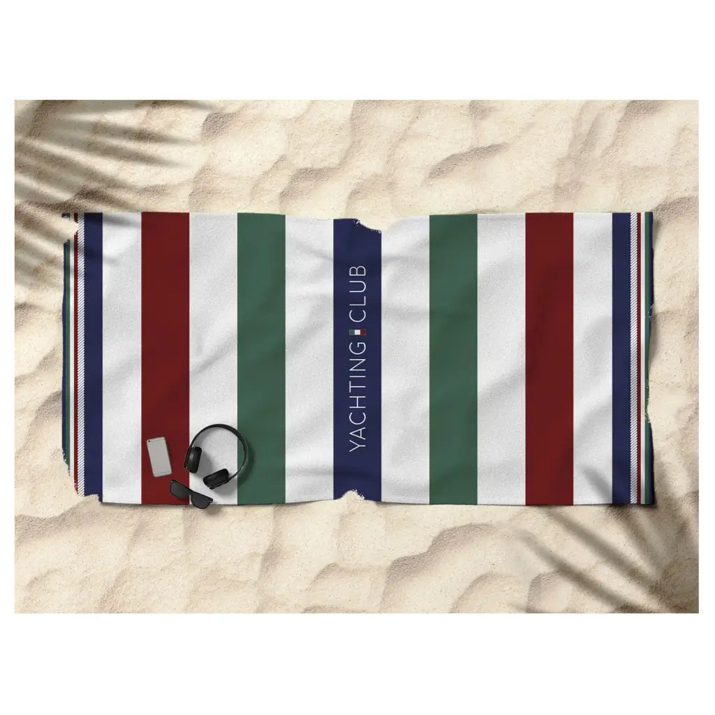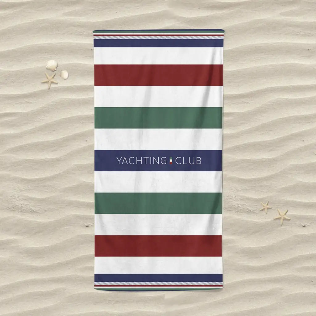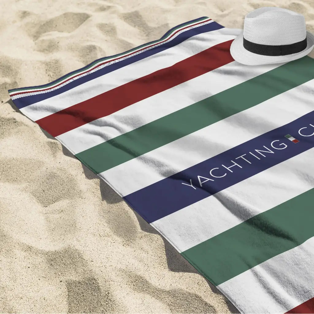 Telo mare in fantasia rigata Travelling della linea Jacquard di Daunex. Dalle dimensioni grandi 100x180 cm, questo telo è realizzato in un'ottima spugna di puro cotone con lavorazione jacquard che lo rende morbidissimo al tatto. La fantasia marinara è un classico senza tempo, perfetto per la stagione estiva, per accompagnare le giornate al mare.