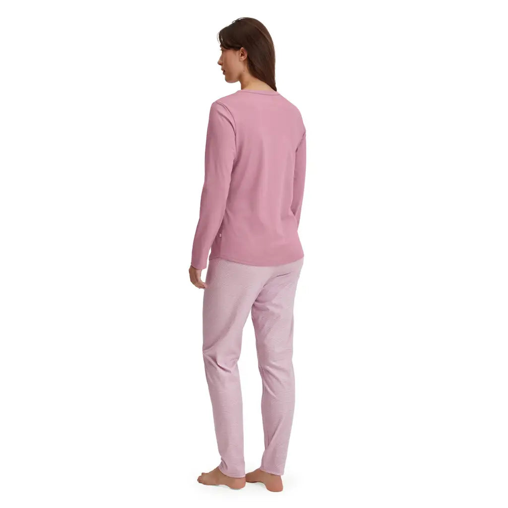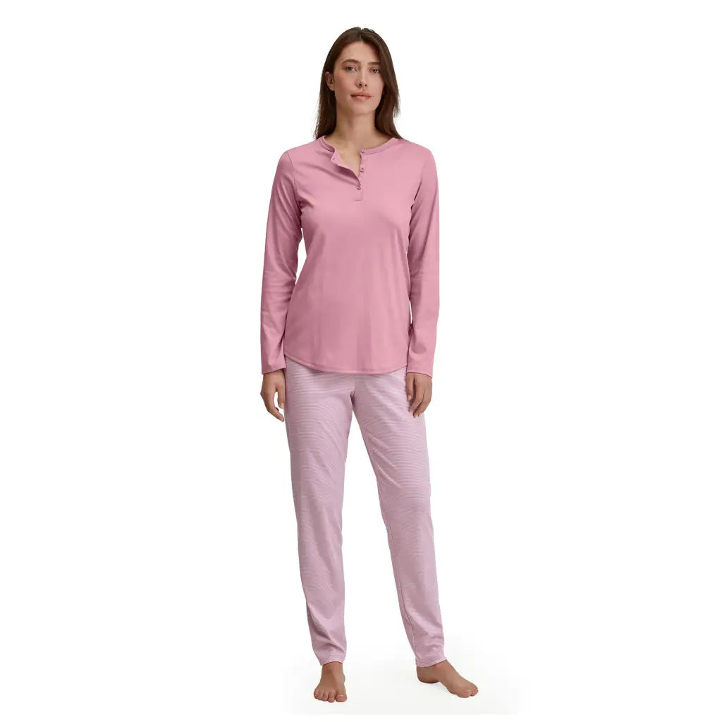 Pigiama donna a serafino a mancia lunga in puro cotone interlock Striped Dreams | Calida