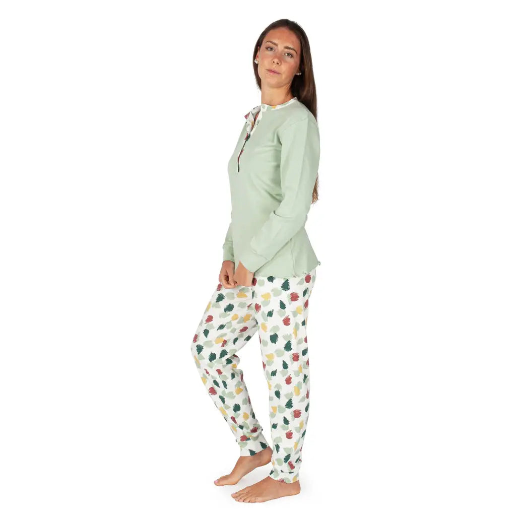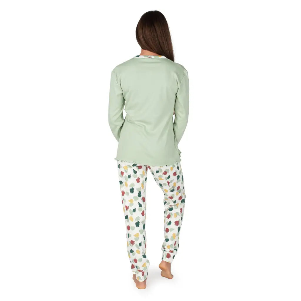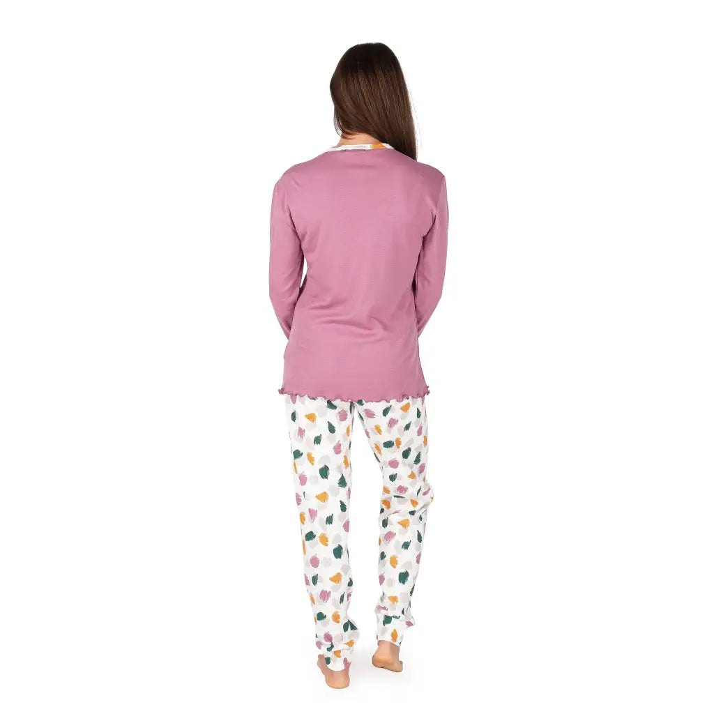 Pigiama donna lungo a serafino con polsini in fantasia pittura in caldo cotone interlock | mariottilab