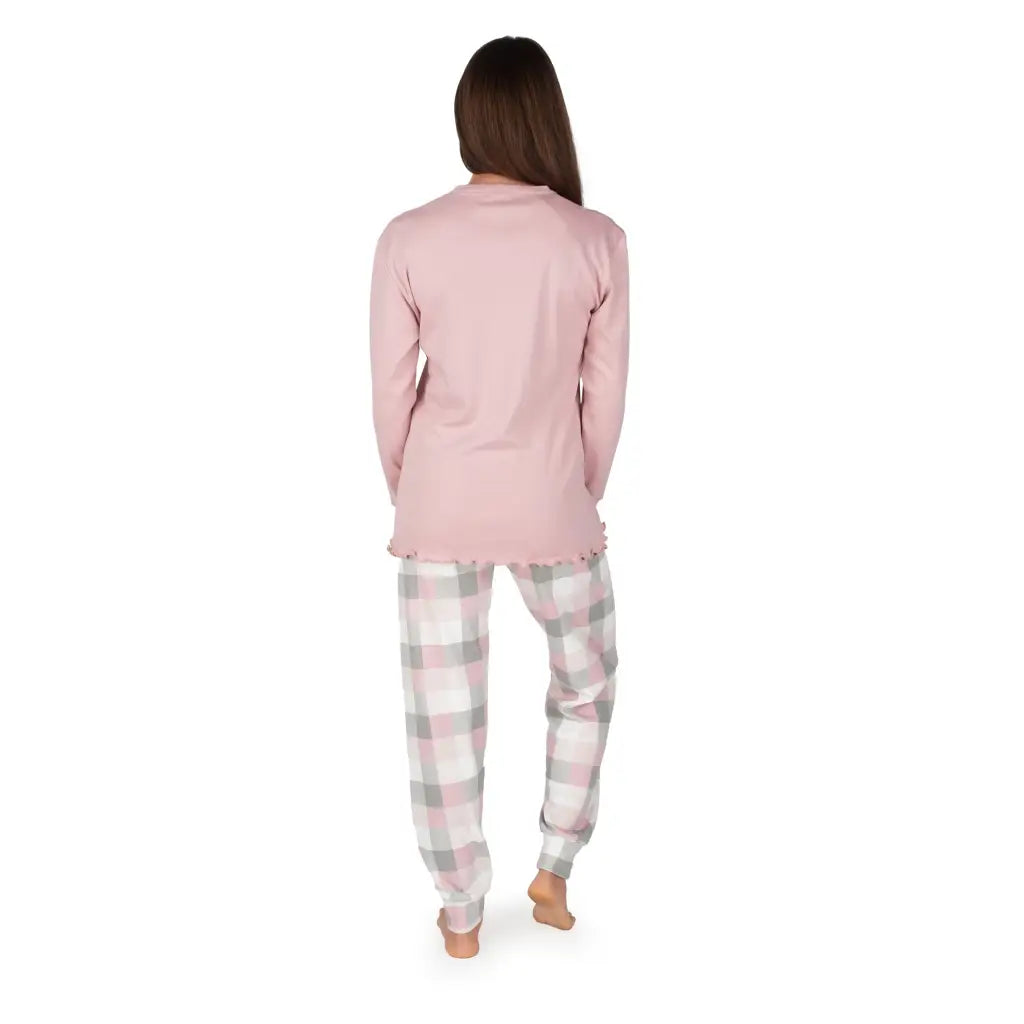 pigiama donna lungo a serafino con polsini in fantasia quadri in caldo cotone interlock | mariottilab