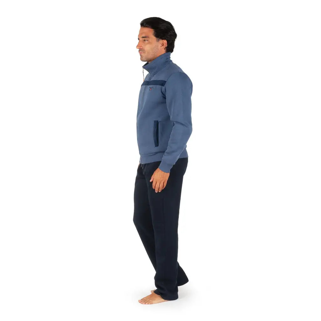 Tuta sportiva in caldo cotone felpato con zip senza cappuccio di Fratelli Campagnolo. Questa tuta ha un design semplice e con linee pulite che la rendono adatta a vari utilizzi, da abbigliamento per il tempo libero e lo sport ad un uso casalingo per la comodità e praticità. Il tessuto in cotone felpato è morbido e confortevole e permette di utilizzarla durante tutta la stagione invernale. Il design con la sua tinta unita è declinato in due colori inusuali ma facilmente portabili e abbinabili: è un classico senza tempo che può essere indossato sia in abbinamento, sia spezzato, utilizzando il pantalone da solo e la giacca abbinata a capi più casual come jeans o pantaloni.