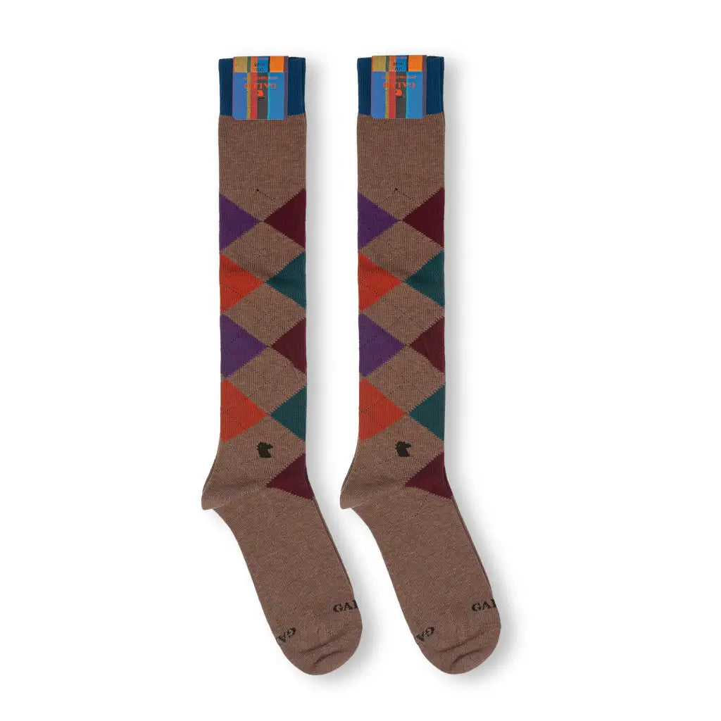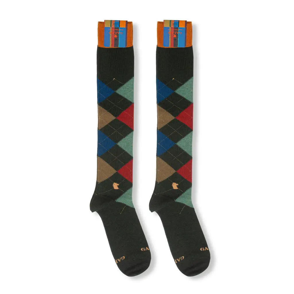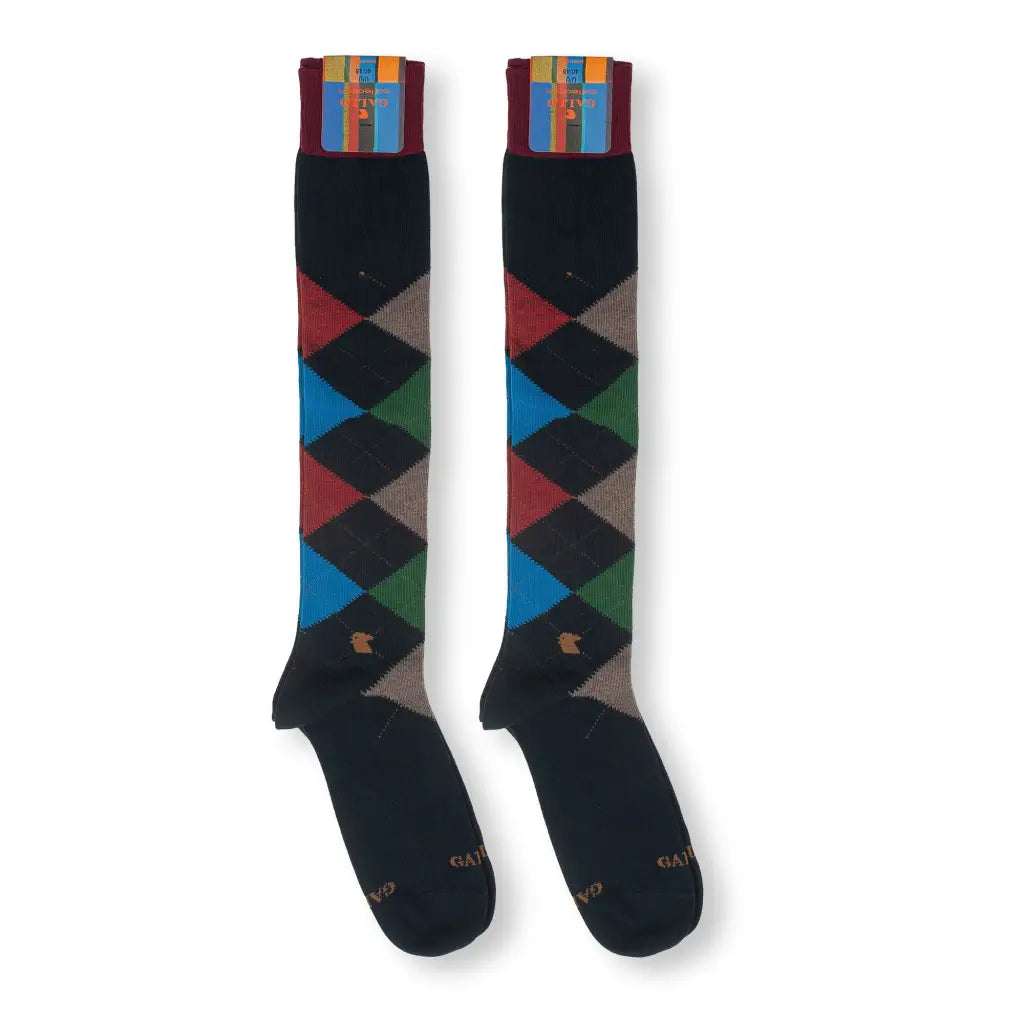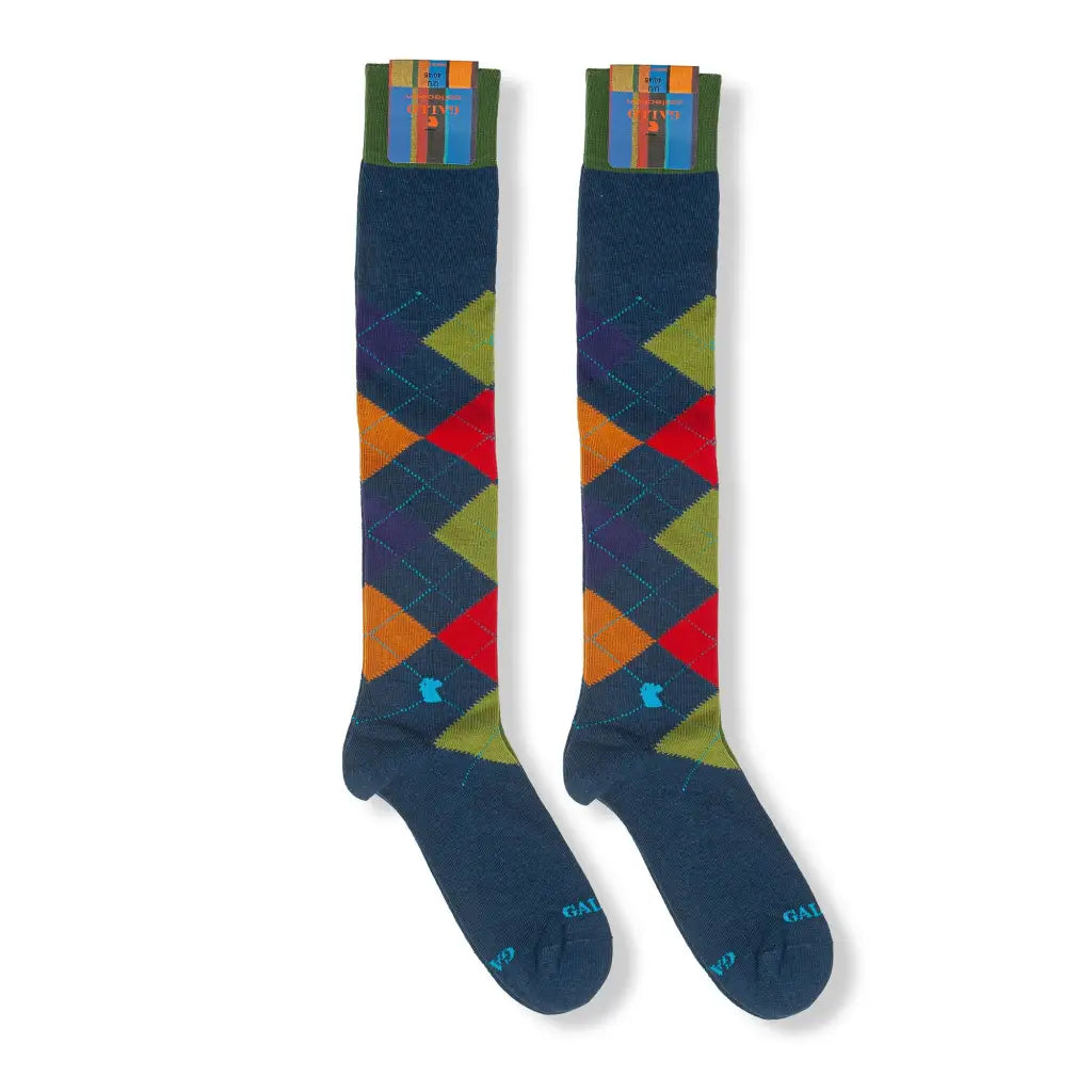 Calzino lungo in caldo cotone della linea Intarsio di Gallo. La fantasia Intarsio è un classico senza tempo che si addice ad ogni occasione d'uso. Con gli abbinamenti particolari e talvolta eccentrici rifiniscono ogni look e si adattano al meglio ad ogni occasione. L'elastico al ginocchio è realizzato in contrasto di colore. Il tessuto in caldo cotone è perfetto per la stagione autunnale ed invernale, per accompagnare durante i passi di tutta la giornata. Si consiglia di lavare ad una temperatura massima di 30°, non candeggiare e non stirare.