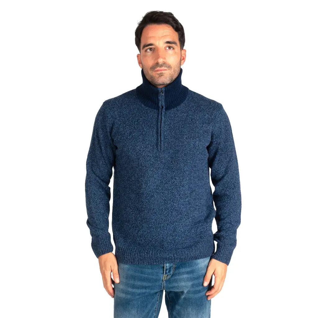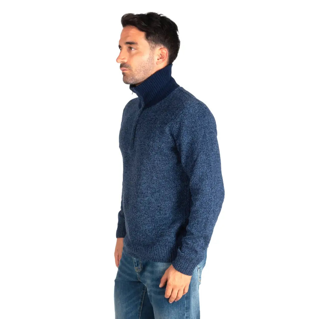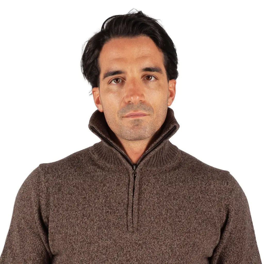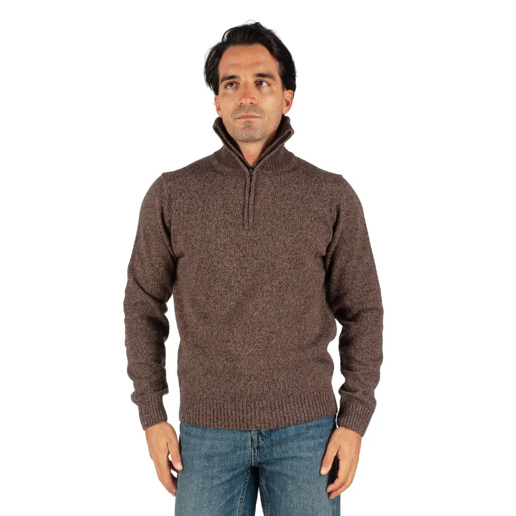 Maglione in lana con lavorazione moulinè della linea Grabs. Questo maglione è particolare grazie al gusto retrò dato dall'apertura a serafino con zip. Il tessuto in Lana è caldo e morbidissimo. Il tessuto ha una lavorazione moulinè che gli dona un tocco di eleganza classica molto bello. Il tessuto è perfetto per la stagione invernale perchè sostenuto e molto caldo.