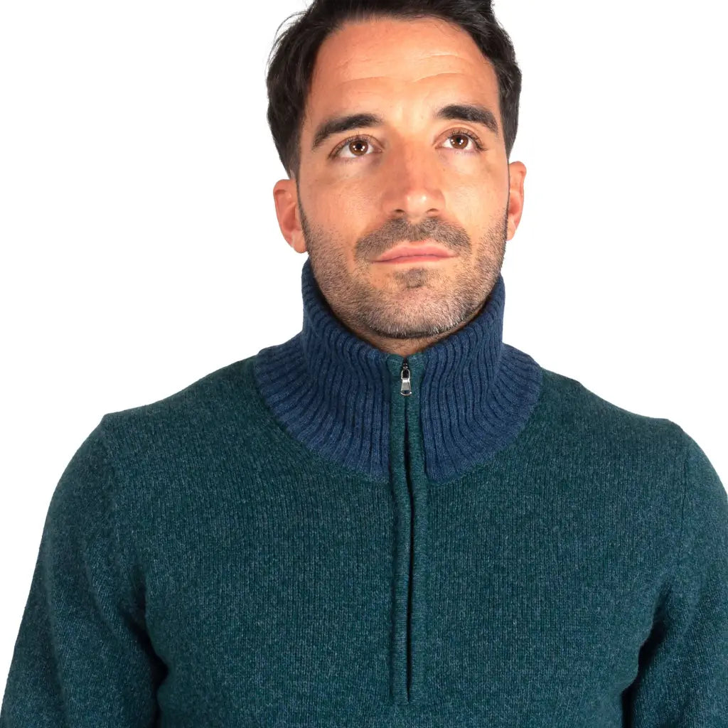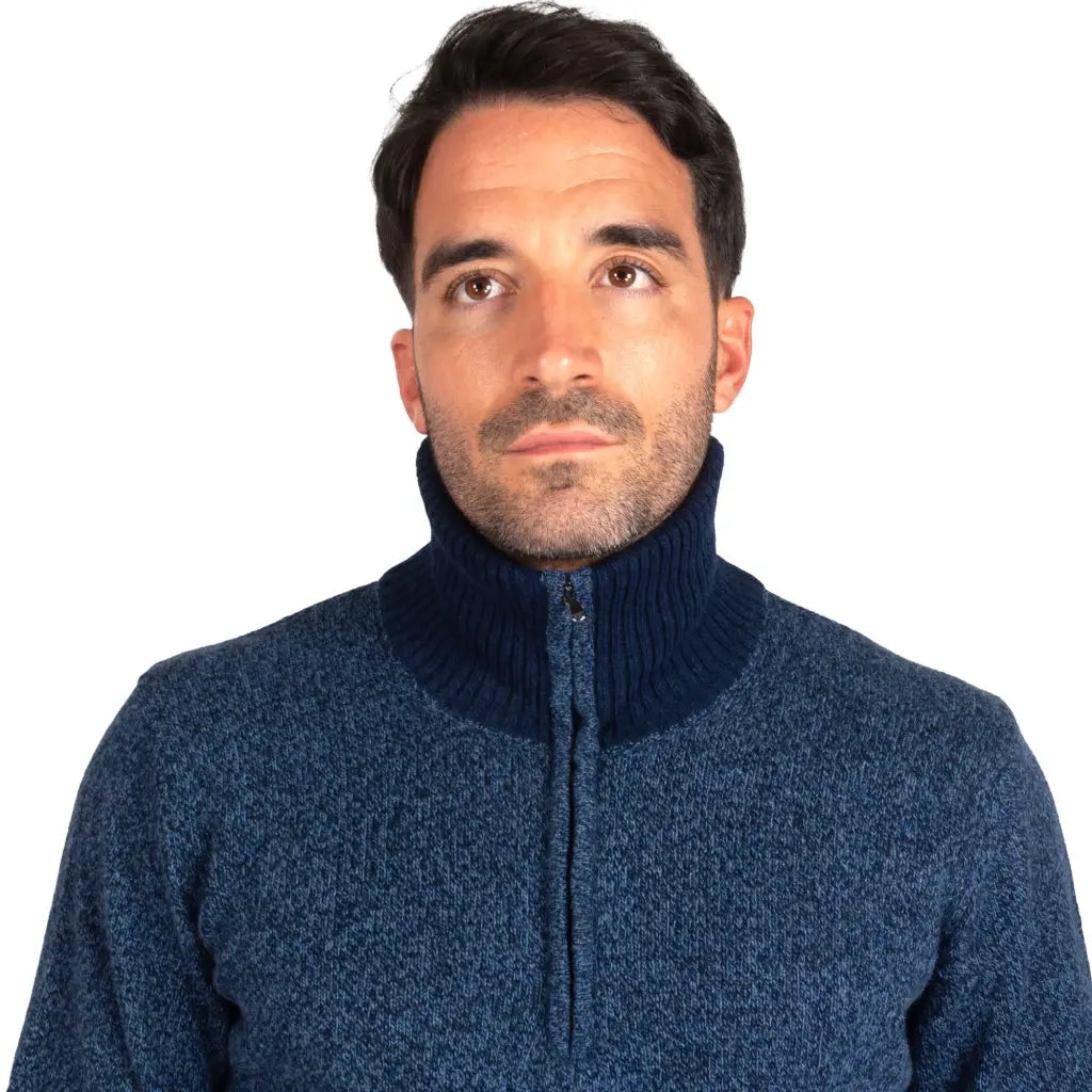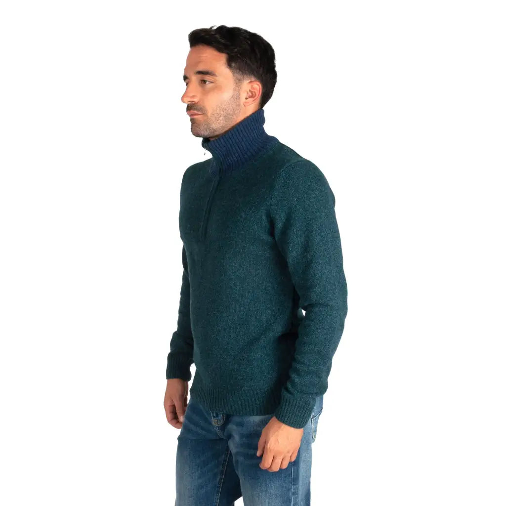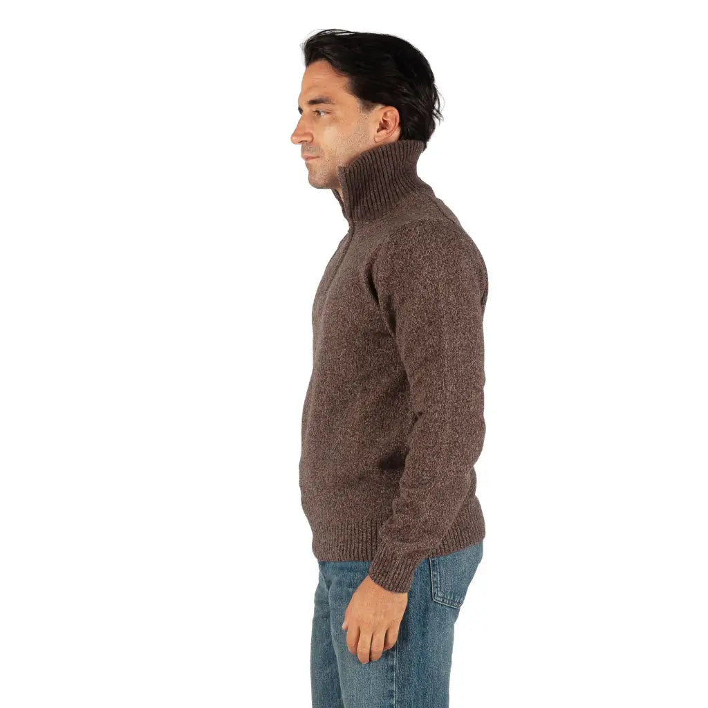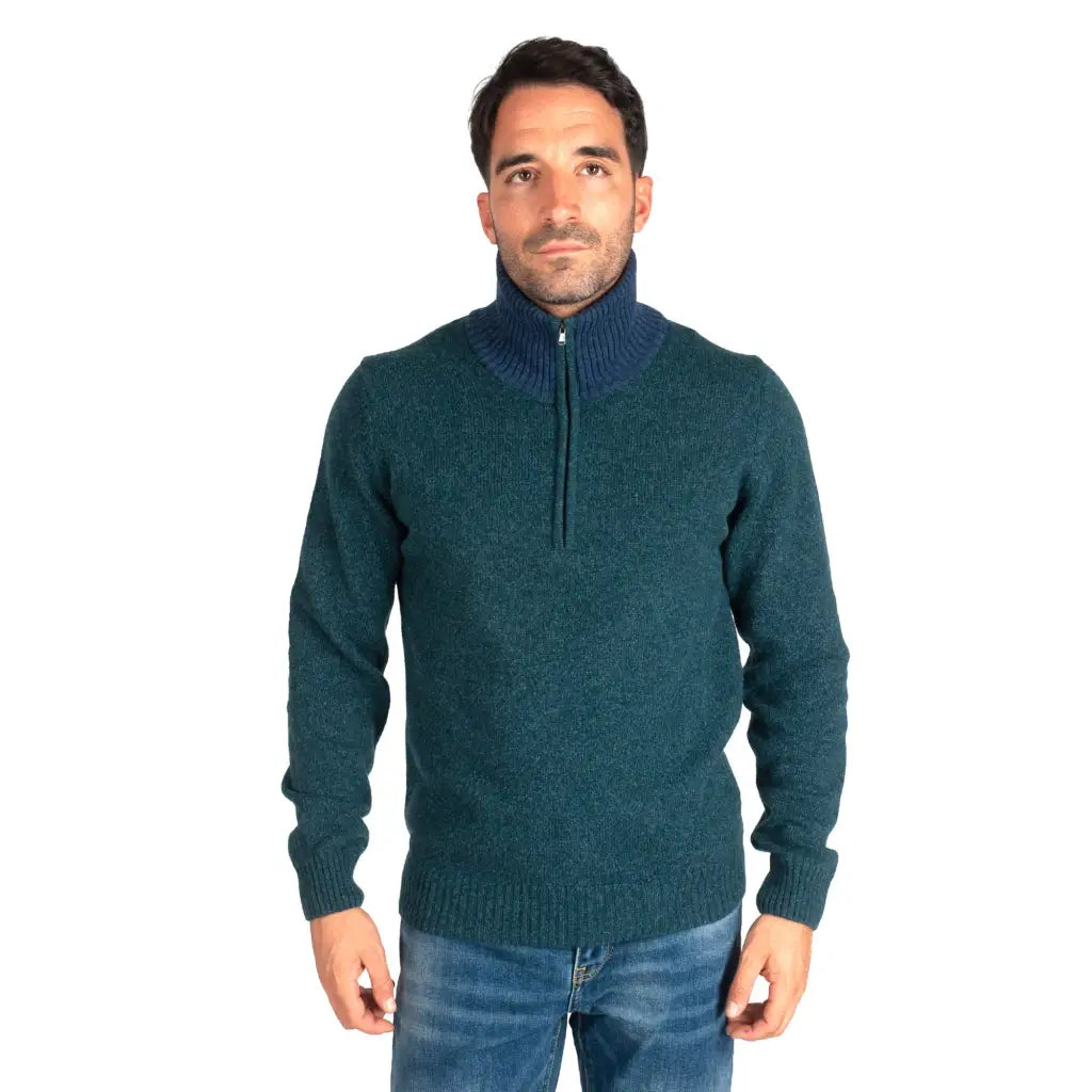 Maglione in lana con lavorazione moulinè della linea Grabs. Questo maglione è particolare grazie al gusto retrò dato dall'apertura a serafino con zip. Il tessuto in Lana è caldo e morbidissimo. Il tessuto ha una lavorazione moulinè che gli dona un tocco di eleganza classica molto bello. Il tessuto è perfetto per la stagione invernale perchè sostenuto e molto caldo.