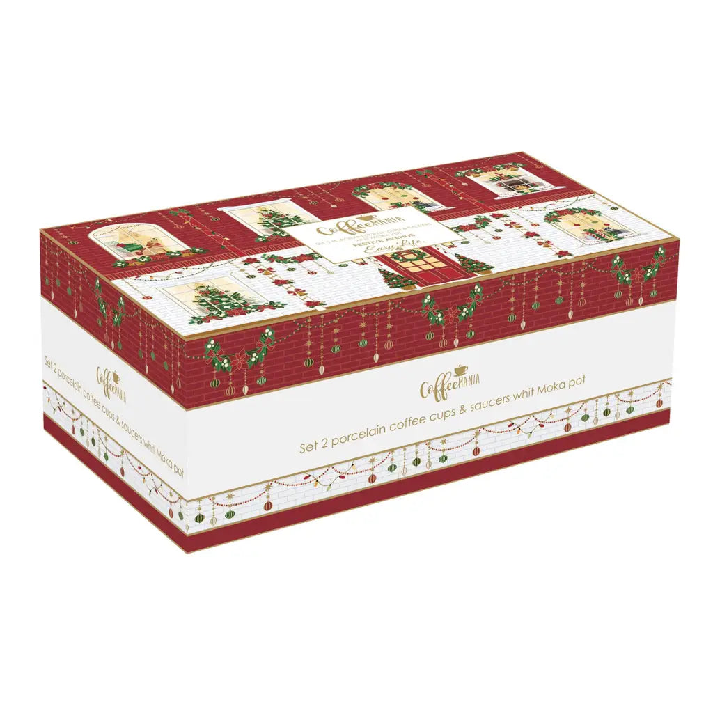 Set 2 tazzine caffè con piattino in porcellana 100 ml e Moka Festive Avenue | Easy Life